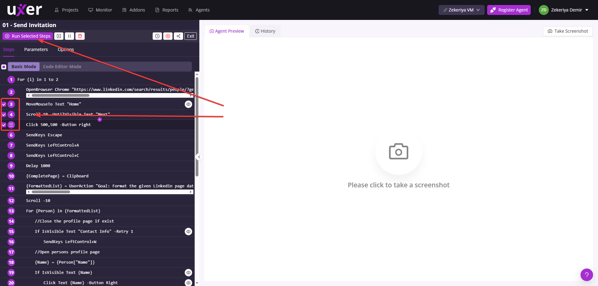 - Option for capture scope: All steps.